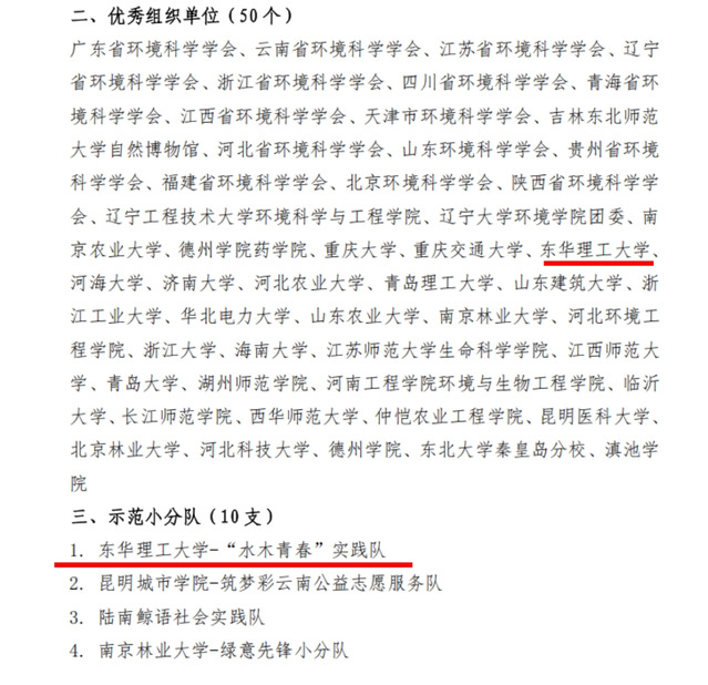 近日,中国环境科学学会发布了2025年“大学生在行动”科普志愿活动评选结果,东华理工大学荣获“优秀组织单位”,“水木青春”实践队荣获“示范小分队”称号(全国仅10支),水资源与环境工程学院学生徐若茜荣获“优秀志愿者”称号。