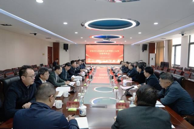 张福庆简要介绍学校的办学历史和发展近况,并感谢吉安市对双方共建电子信息现代产业学院所给予的支持。他指出,学校始终将服务国家战略需求与地方经济社会发展作为办学的重要方向,积极推动科研成果转化与创新人才培养。期待进一步深化校地合作,共同构建校地协同、互利共赢的高质量发展新格局。