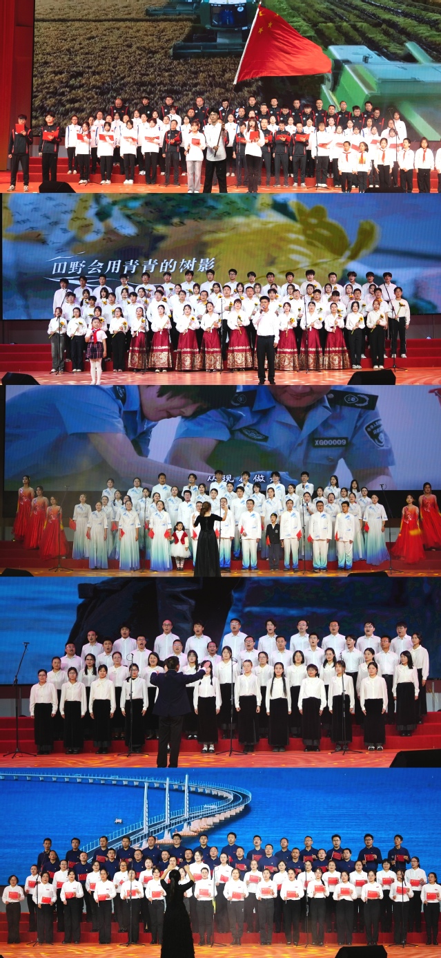 演出曲目精彩纷呈,情感层次丰富。《我和我的祖国》《歌唱祖国》《我的中国心》《我的祖国》《爱我中华》等歌曲,唱出了中华儿女对祖国的赤子之心和深沉热爱;《明天会更好》《我们走在大路上》《国家》《师者丹心育桃李》等经典曲目,带领观众重温激情岁月;《铭记》《山河》《追寻》等通过合唱与朗诵的完美结合,展现了教育工作者不忘初心、砥砺前行的精神风貌。《珊瑚颂》《让中国更美丽》《保卫黄河》《走向复兴》《向往》等以载歌载舞的形式,既讴歌光辉历史,又展望美好未来,实现了时空的深情对话。