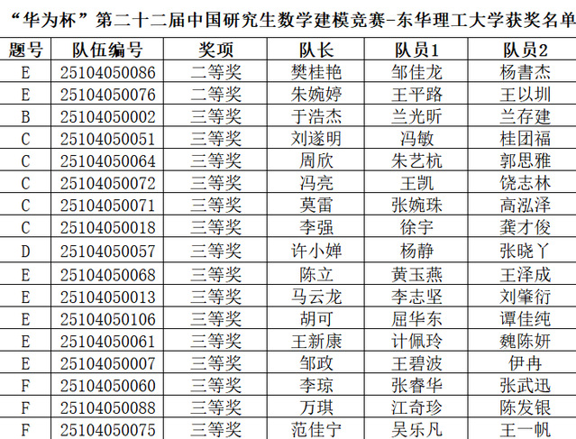 近日,“华为杯”第二十二届中国研究生数学建模竞赛获奖名单正式公布。东华理工大学研究生代表队表现优异,共获二等奖2项、三等奖15项。