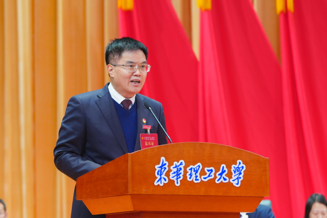南昌大学团委书记廖元新代表兄弟高校致辞,东华理工大学工会主席代表群团组织致辞,对大会召开表示祝贺,并表示将继续加强交流合作,促进共同发展。