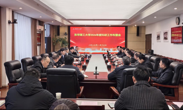 1月16日上午,东华理工大学召开2026年度科研工作布置会,全面部署本年度科研重点任务。校党委副书记、校长罗仙平出席会议并讲话,校党委常委、副校长邓居智主持。