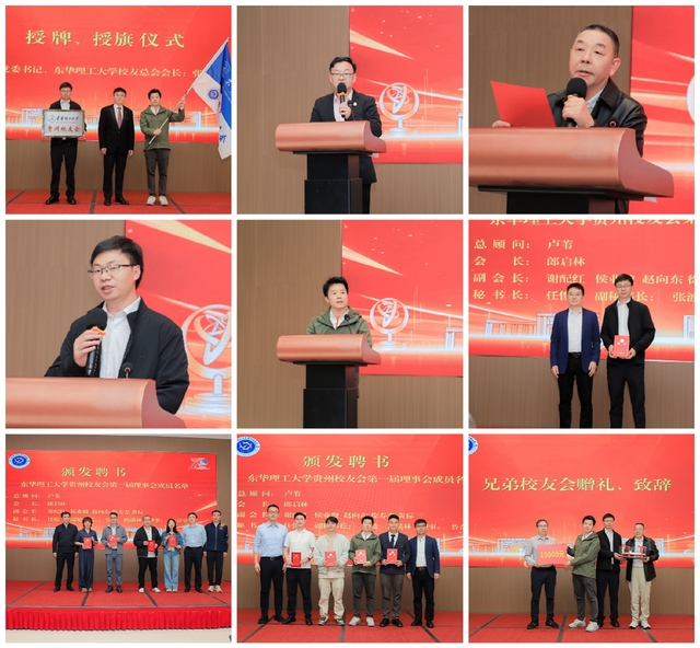 会上党办(校办)主任许亚男宣读了《关于同意成立东华理工大学贵州校友会》的批复, 听取了筹备工作汇报,表决通过了《东华理工大学贵州校友会第一届理事会成员建议名单》《东华理工大学贵州校友会资产与经费管理办法》,举行了理事会成员聘任仪式。首任会长郎启林代表理事会作表态发言。温州校友冯耀宽和北京校友会赠礼,北京校友会会长左红堂代表地方校友会致贺辞。