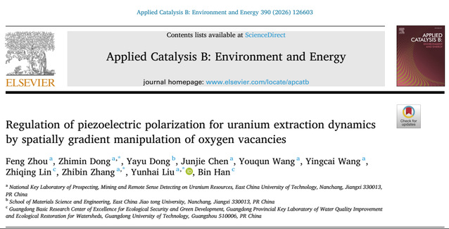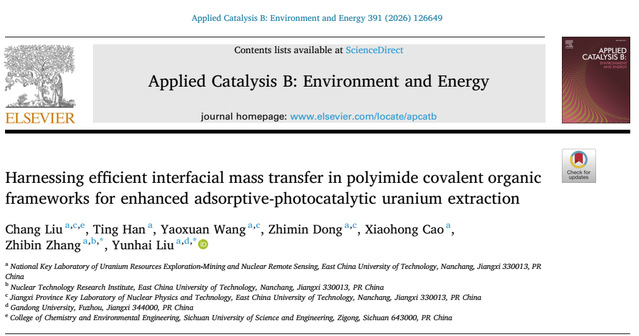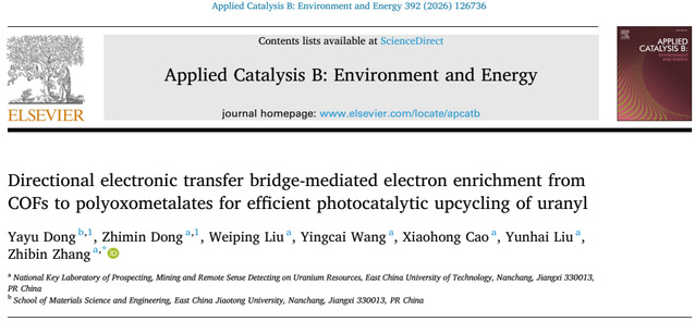 近期,东华理工大学刘云海教授和张志宾教授团队在光催化铀提取与核废水协同处理领域取得系列重要进展,在国际顶级期刊《Applied Catalysis B: Environment and Energy》(影响因子 > 20)上连续发表3篇代表性成果。