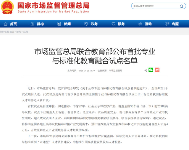 近日,国家市场监督管理总局、教育部联合公布了全国首批专业与标准化教育融合试点名单,东华理工大学勘查技术与工程、软件工程两个专业成功入选,为学校“十五五”本科教育改革发展开好局、起好步注入强劲动力,也标志着学校产教融合与特色人才培养工作迈上了新的国家级台阶。