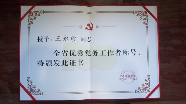 多年来,全省“红旗”支部、全省离退休先进单位、全省离退休“五好”支部……这不仅仅是一个个荣誉,更是王永珍带领支部成员团结一心的最好见证。(图/文 张和西)
