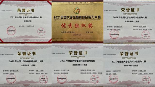 由中国服务贸易协会、河海大学联合主办的2021年全国大学生商科综合能力大赛于2020年11月8日正式开赛,2021年7月18日圆满结束。本次大赛共有来自武汉大学、中南财经政法大学、安徽大学、合肥工业大学、南昌大学、江西财经大学、河北大学、浙江财经大学、河南工业大学、河海大学等近百所高校的537支队伍参赛。我校丁宝根老师、胡焱老师、邹静老师、周云峰老师共组织10支队伍参赛,最终喜获全国总决赛二等奖1项,全国半决赛一等奖5项、二等奖3项、三等奖1项的好成绩。此外,我校还荣获优秀组织奖。