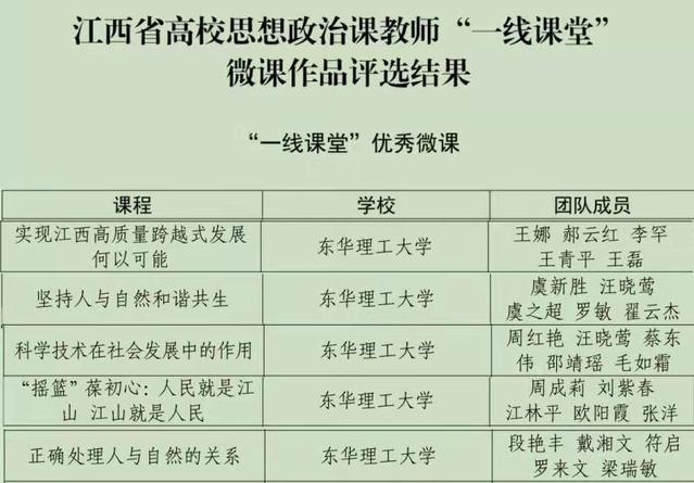 近日,江西省教育厅公布高校思想政治课教师“一线课堂”微课作品评选结果,我校马克思主义学院获得5项优秀微课荣誉,获奖数量位列全省高校第二名。此外,我校还获得优秀组织单位称号。