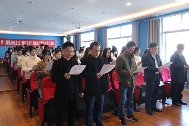 12月3日,学校在枫林校区文法楼小剧场设立了2021年“宪法晨读”东华理工大学分会场,通过线上(视频)方式参与了全国教育系统“宪法晨读”活动。文法学院、江西省教育普法研究中心负责同志和枫林校区本科生100余人参加了活动。在教育部党组成员、副部长宋德民的领读下,全场学生一起诵读宪法部分条款,学习宪法知识。活动现场宣布了第六届全国学生“学宪法 讲宪法”活动全国总决赛获奖名单,我校参赛学生吴海楠同学作为江西省代表队成员荣获宪法法治知识竞赛全国一等奖。此外,学校积极参与“宪法卫士”2021年行动计划,在校学生参与率达到100%。