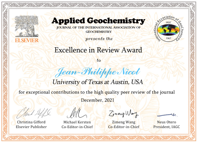 日前,国际知名期刊——应用地球化学Applied Geochemistry(AG)颁发了2021年度优秀审稿人奖(Excellence-in-Review Awards),我校水资源与环境工程学院刘海燕老师成功获评。