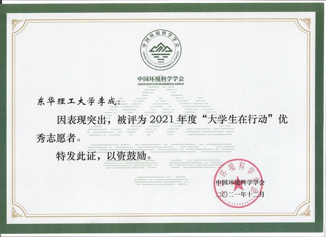 近期,中国环境科学学会公布了2021年全国“大学生在行动”优秀组织单位和个人评选结果,我校“水木青春”实践队在本次活动中荣获“优秀小分队”;2019级水文与水资源工程专业李成同学获得“优秀志愿者”称号。