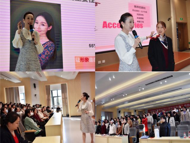 为帮助女教职工塑造优雅知性的气质形象,校工会邀请国际高级礼仪培训师、高级形象讲师、CIEC全国形象礼仪考评中心主任、国际礼学专家委员会理事郭雅萌老师,就女性服饰穿搭、形象设计、化妆技巧、职场礼仪等内容进行了“高校女教师如何打造职业形象”专题讲座,现场进行了个人形象设计与日常职业妆容技巧培训、答疑,帮助我校女教职工更好展现个人气质与风格,打造优雅女教师形象。