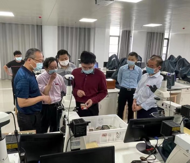 张福庆听取了地球科学学院负责人关于我校备战第六届全国大学生地质技能大赛的工作汇报,并在新实验大楼14楼比赛场地观看了参赛选手的线上模拟赛。期间,他仔细询问了参赛选手的选拔过程、赛前培训情况、线上参赛细节、疫情防控措施等,对参赛选手和指导老师不畏困难,积极备战给予充分肯定。