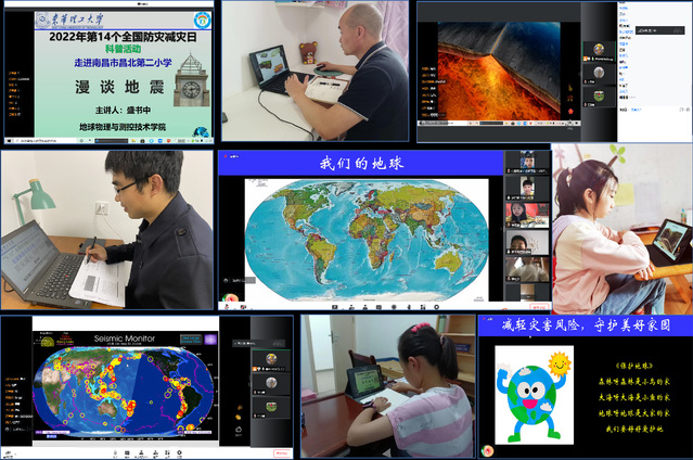开展了多次线上科普讲座。学院固体地球物理系依托防灾减灾科学与工程专业,联合昌北二小等学校开展了系列“科普讲座进校园”活动,以“漫谈地震”“防灾减灾,保护地球”等为题,用丰富的案例、详实的数据和图文并茂的表现形式,为孩子们上了一场场生动有趣的在线科普课,吸引了600余人在线参加。地震的破坏力有多大?我们面临的灾害风险有哪些?如何更好地保护人类共同生存的地球?这些问题引起了师生家长的热烈讨论。讲座结束,学生盛安琦激动地说到:“很少有机会听大学教授给我们上课,我深深感受到保护地球是每一位公民的责任,也了解到通过地球物理等科学方法可以观察地球,从而更好的保护她。”