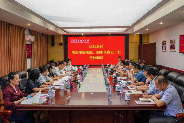 肖云简要介绍了调研目的。他表示,东华理工大学是一所历史悠久、文化底蕴深厚、人才聚集、科研实力强劲的高校。市校双方在人才培养、产教融合、平台搭建等方面有着很大的合作前景,希望双方进一步深化拓展合作的空间和领域,增强合作的体系性和计划性,推动合作取得更多实质性成果,谱写共赢发展新篇章。肖云表示,南昌市将继续在项目研发、发展用地、大学生就业创业、教职工子女入学等方面予以学校更大支持和提供更优质的服务,助力学校办得更好更有特色。