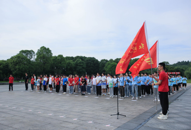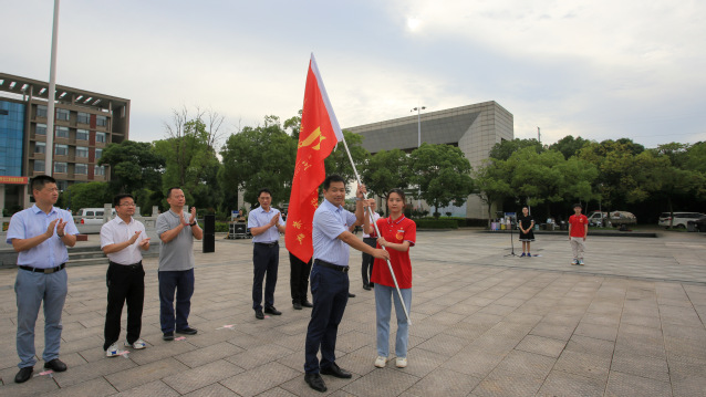 仪式上,刘云海为“红色走读”活动团队和暑期社会实践团队授旗,学生代表宣读了活动倡议书。