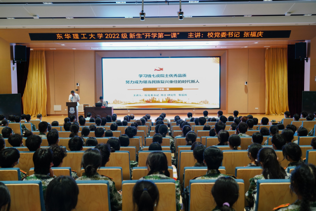 9月26日上午,校党委书记张福庆以“学习钱七虎院士优秀品质,努力成为堪当民族复兴重任的时代新人”为题,为2022级本科新生讲授 “开学第一课”。校党委常委、副校长刘云海主持。300余名新生代表在新实验大楼报告厅现场聆听。