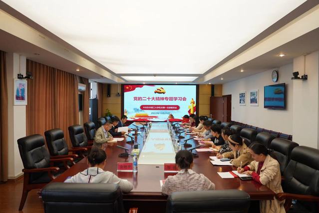 10月26日,机关第一党支部在行政楼401会议室召开党的二十大精神专题学习会,传达学习贯彻党的二十大和党的二十届一中全会精神,校党委书记张福庆以普通党员身份参加会议。机关第一党支部书记主持会议。