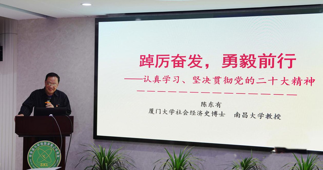 11月3日下午,我校与南昌航空大学党委理论学习中心组以“学习党的二十大精神 提升高校对现代化建设的科技与人才支撑能力”为题开展联学联研活动。江西省委宣传部原常务副部长陈东有应邀作党的二十大精神辅导报告。南昌航空大学党委书记罗嗣海,党委副书记、校长卢超,我校党委书记张福庆,校党委副书记、校长孙占学出席并讲话。两校的其他党委理论学习中心组成员和研究生院主要负责人参加活动。我校党委副书记刘紫春主持活动。