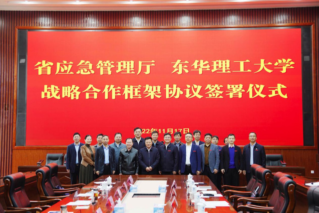 省应急管理厅办公室、地震和地质灾害救援处、科技和信息化处、防汛抗旱处、省应急管理科学研究院,我校党委(校长)办公室、省部共建工作办公室、地球科学学院、地球物理与测控技术学院、水资源与环境工程学院、测绘工程学院、核科学与工程学院等部门负责同志参加签约仪式。(文/王一舟 图/刘宇翔)