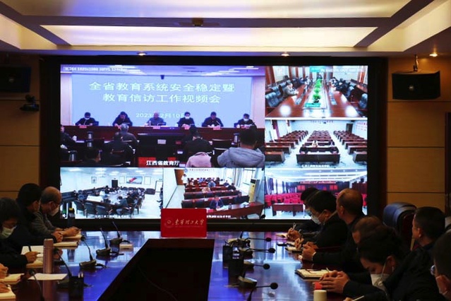 2月10日,2023年全省教育系统安全稳定暨教育信访工作视频会议在南昌召开,会议就2023年全省教育系统安全稳定暨教育信访工作,以及新学期开学和全国“两会”期间全省学校安全稳定工作作了部署。校党委常委、副校长刘云海,学校相关部门、学院负责人在我校昌抚两校区分会场参加会议。