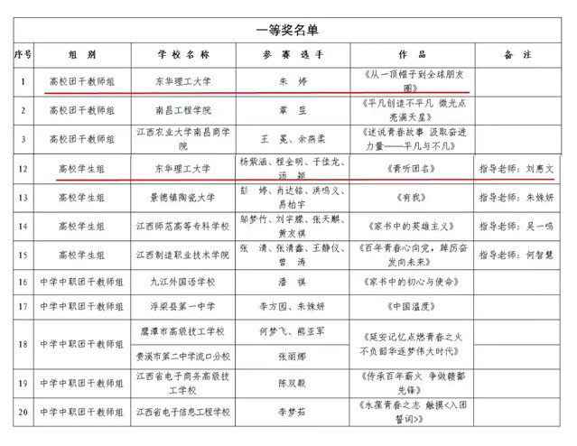 近日,“学习二十大 永远跟党走 奋进新征程”第六届江西省学校共青团“微团课”大赛结果揭晓,我校微团课作品《青春有我,唱响时代主旋律》获得全省高校青年教师组特等奖(本组第二名)、《从一顶帽子到全球朋友圈》获得全省高校团干组一等奖、《“青”听团名》获得全省高校学生组一等奖,校团委获优秀组织奖,创造了我校在该项赛事中的历史最好成绩,获奖数量居全省高校前列。