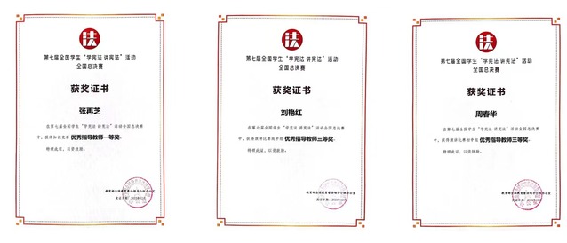 近日,第七届全国、全省学生“学宪法 讲宪法”活动获奖名单揭晓,全国总决赛中,江西省代表队指导教师、我校教师张再芝获知识竞赛优秀指导教师一等奖,刘艳红和周春华获演讲比赛优秀指导教师三等奖;全省总决赛中,我校荣获高校组优秀组织奖,杨紫涵同学获演讲比赛二等奖,游洋秀同学获知识竞赛三等奖,李萌和周春华老师分别获优秀指导教师二等奖和三等奖。