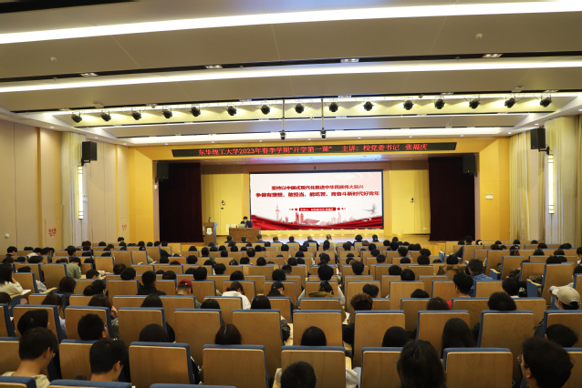 3月9日下午,校党委书记张福庆以“坚持以中国式现代化推进中华民族伟大复兴,争做有理想、敢担当、能吃苦、肯奋斗新时代好青年”为题,在新实验大楼报告厅为师生讲授 “开学第一课”。校党委副书记刘紫春主持。300余名师生到场聆听。