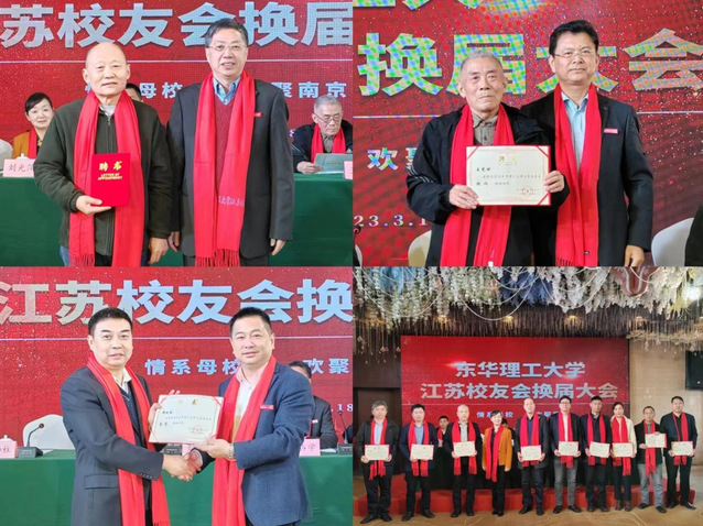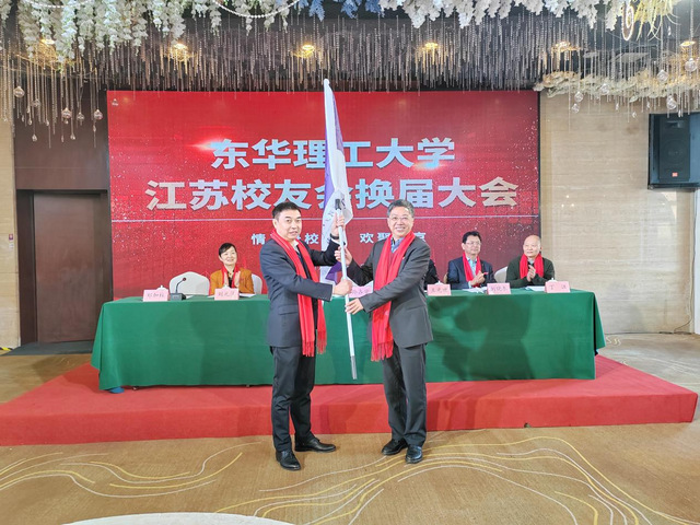 会上,孙占学等为江苏校友会第四届理事会成员授旗及颁发聘书。在学校和全体在苏校友共同努力下,东华理工大学江苏校友会换届大会圆满结束。