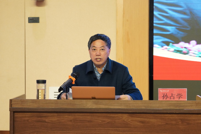 孙占学从“正确把握党的二十大报告中关于教育、科技、人才的重要论述”“科技自立自强需要科学家精神”“新时代青年当用志气、骨气、底气书写科技担当”三方面,向大家讲述了一代代科学家心系祖国和人民,不畏艰难,无私奉献,为科学技术进步、人民生活改善、中华民族发展作出了重大贡献的中国科学家事迹。