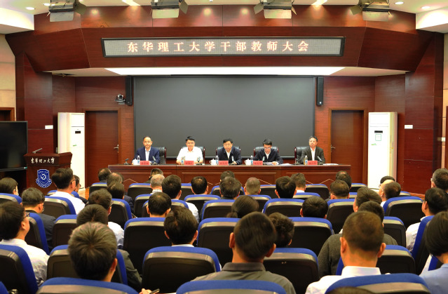 5月8日上午,东华理工大学在广兰校区行政楼一楼报告厅召开干部教师大会。省委组织部副部长、省人大常委会选任联工委主任刘光华出席会议并宣读省委关于东华理工大学主要负责同志职务调整的决定:提名徐景坤同志任东华理工大学校长,孙占学同志因年龄原因不再担任东华理工大学党委副书记、校长职务。会议由省委教育工委副书记郑志军主持。