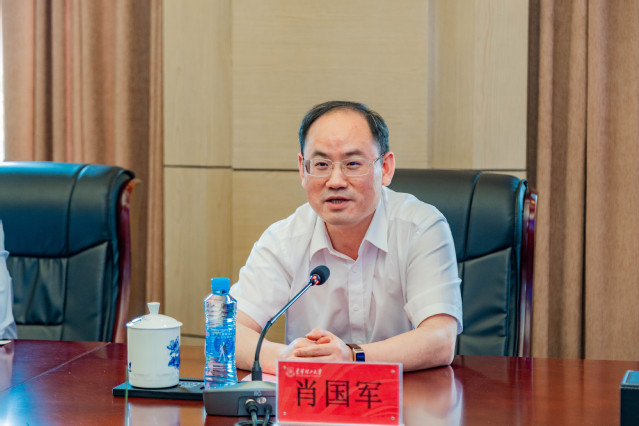 张福庆对肖国军一行的到来表示热烈欢迎,感谢鹰潭市政府一直以来对东华理工大学的关心和支持。他简要介绍了东华理工大学发展历程、办学特色,以及近年来在教书育人、科学研究、社会服务、文化传承、国际合作等方面取得的突出成绩,希望市校双方充分发挥各自优势,强化人才交流与科技合作,实现双方互利共赢,共同发展。