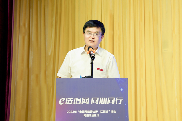 6月13日下午,2023年“全国网络普法行·江西站”网络法治论坛在东华理工大学举办。江西省委网信办一级巡视员周森昆、中央网信办中国网络空间安全协会副秘书长王健兵、中央部委与各省市委网信办领导出席论坛。东华理工大学党委书记张福庆出席并致欢迎辞,校党委常委、副校长刘云海作专题报告,师生代表160余人参加了论坛活动。