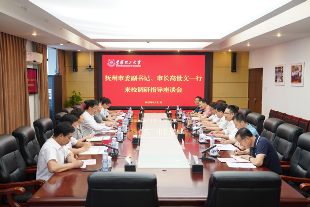 6月21日上午,抚州市委副书记、市长高世文,抚州市人大常委会党组成员、副主任、赣东学院党委副书记陈克胜,副市长蔡青,市人民政府秘书长李慷一行到东华理工大学调研指导。学校在南昌广兰校区行政楼401会议室召开座谈会。东华理工大学党委书记张福庆,党委常委、副校长邱建丁出席会议。会议由邱建丁主持。