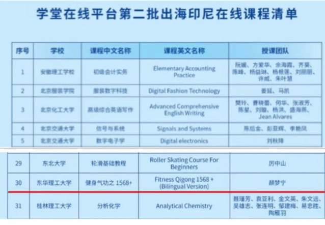 近日,东华理工大学体育学院一门双语慕课《健身气功之1568+》成功入选学堂在线平台第二批“出海”印尼在线课程清单。课程将助力印尼高校在线教学服务,实现了东华理工国际教育再创佳绩。