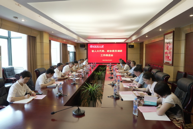 6月29日上午,东华理工大学在南昌校区行政楼301会议室召开省人大代表、政协委员调研工作推进会。校党委书记张福庆、校长徐景坤、校党委常委、副校长熊国保出席会议,校党委常委、统战部长张立亭主持会议。