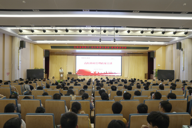 省财政厅有关处室负责人,东华理工大学科研与科技开发处、计划财务处、审计处等相关部门负责人及各学院科研人员、师生代表共300余人参加宣讲会。(文/刘宇翔 刘子新 赵佳 图/刘宇翔)