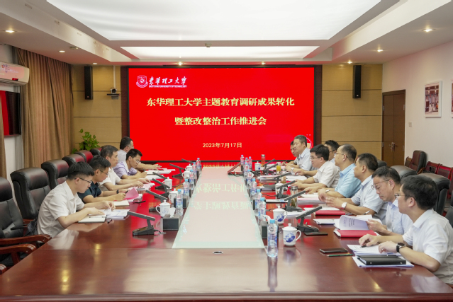 7月17日下午,东华理工大学召开主题教育调研成果转化暨整改整治工作推进会。省委主题教育第十巡回指导组副组长潘泽林,省委主题教育办整改整治组成员罗俊、廖成堃,省委主题教育第十巡回指导组成员陈盼盼、汪丁丁到会指导。校党委书记张福庆主持会议并讲话。学校党政领导班子成员出席会议。