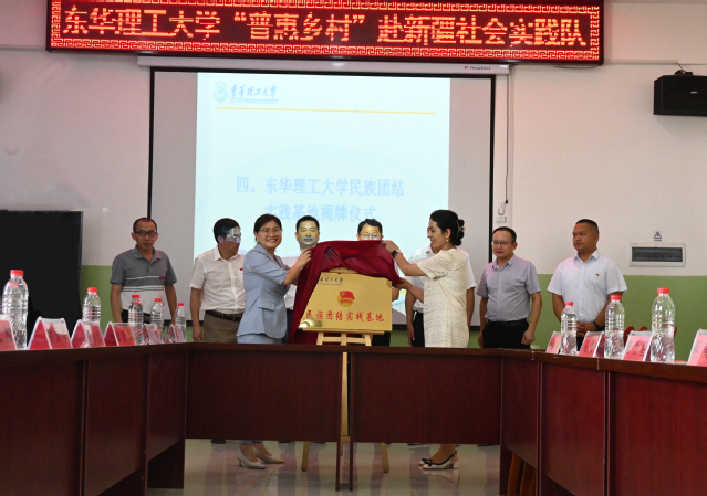 会议最后,东华理工大学团委与团阿克陶县委负责同志共同为东华理工大学民族团结实践基地揭牌,这标志着东华理工大学在阿克陶县有了固定的社会实践基地。学校将定期派遣师生进驻基地开展社会实践工作。