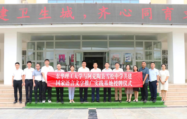 7月19日,东华理工大学国家语言文字推广实践基地签约揭牌仪式在新疆克州阿克陶县雪松中学隆重举行。东华理工大学党委常委、副校长刘云海和新疆克州教育局党组成员、副局长(江西援疆)柯美春出席签约揭牌仪式,并为共建基地进行揭牌。仪式由阿克陶县委常委、副县长廖为星主持。