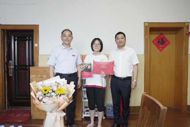 7月23日,东华理工大学校长徐景坤在校党委常委、副校长刘云海的陪同下,来到2023级计算机科学与技术专业新生付若珊同学家中,送上编号为0001号录取通知书。