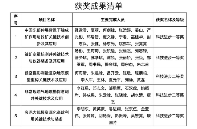 近日,江西省人民政府发布了《江西省人民政府关于2022年度江西省科学技术奖励的决定》(赣府发〔2023〕9号),对2022年度为江西省科学技术进步、经济社会发展作出突出贡献的科技工作者和组织给予奖励。东华理工大学喜获5项2022年度江西省科学技术奖励,其中一等奖2项、二等奖3项,获奖数量在省属高校中位列前茅。