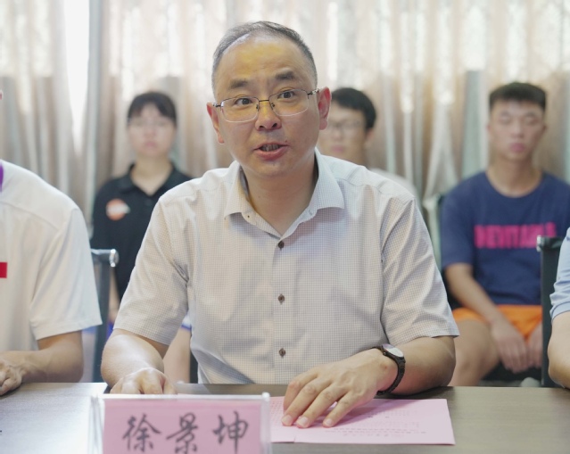 徐景坤代表学校向载誉归来的运动健儿表示亲切慰问和热烈祝贺,向辛勤耕耘、无私奉献的教练员和工作人员表示衷心感谢和崇高敬意。他指出,朱亚坤一举夺得第21届全国大学生田径锦标赛男子丙组百米赛的桂冠,成为学校历史上首位在全国大学生体育竞赛上获得田径金牌的运动员,也成为学校第一位升格为“国家健将级运动员”的学子,开启了学校体育运动史上光辉灿烂的新篇章。