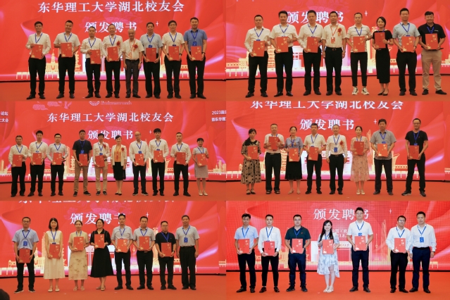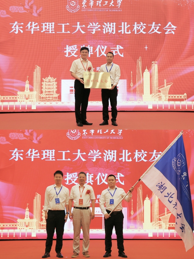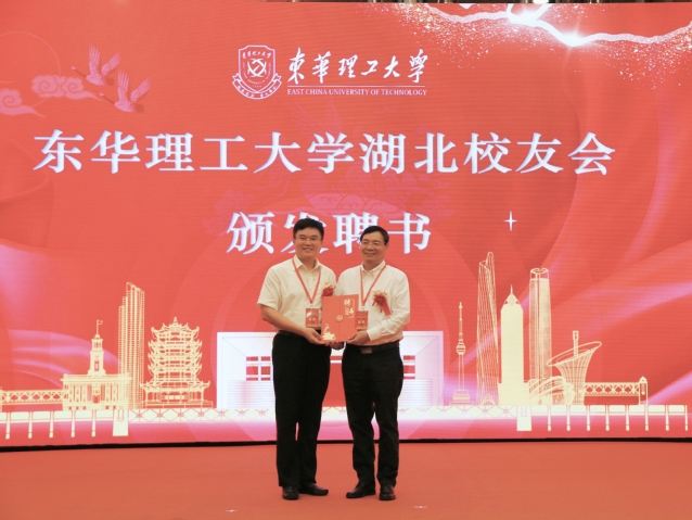 会上,东华理工大学各级领导为第一届湖北校友会及理事会成员授牌、授旗并颁发聘书。