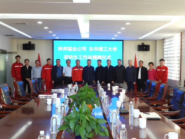 会后,副校长夏菲和科邦锰业总经理伊新辉为东华理工大学与科邦锰业共建的“东华理工大学-阿克陶科邦锰业制造有限公司研究生工作站”揭牌。