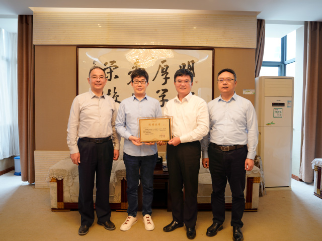 张福庆代表学校对沈泽民一行的到来表示热烈欢迎,对江西赣基集团工程有限公司给予东华理工大学建设发展的关心支持表示感谢,并向沈泽民颁发捐赠证书。