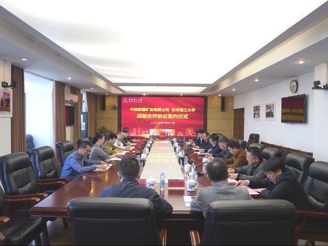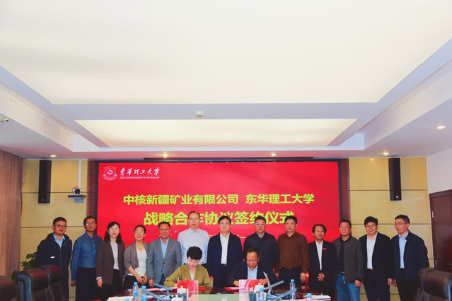10月11日上午,东华理工大学与中核新疆矿业有限公司在学校广兰校区行政办公楼301会议室举行战略合作协议签约仪式。中核新疆矿业有限公司副总经理黄群英、总工程师周根茂,东华理工大学党委书记张福庆,原党委副书记、校长孙占学出席。校党委常委、副校长夏菲主持签约仪式。
