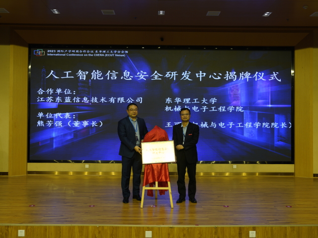 开幕式上还举行了东华理工大学核科学与工程学院与江西省智成测控技术研究所有限责任公司“人才培养与科技合作签约”仪式,以及东华理工大学机械与电子工程学院与江苏东蓝信息技术有限公司的“人工智能信息安全研发中心揭牌”仪式。