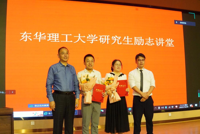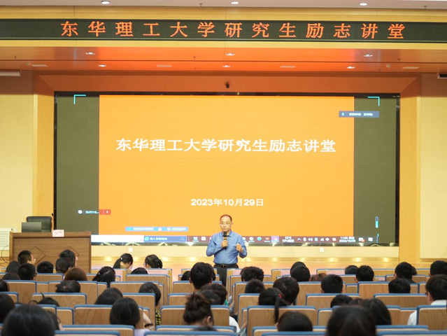 10月29日上午,东华理工大学研究生院在广兰校区新实验大楼一楼报告厅举办了研究生励志讲堂(第二、三讲),东华理工大学校长徐景坤受邀出席。海南大学王同洲博士、嘉兴学院姚媛媛博士分别做了题为“未来掌握在自己手中”“越努力越幸运”的专题讲座。本次讲座采用线上线下的方式同步进行,东华理工大学、江西科技师范大学两校共计500余人观看。