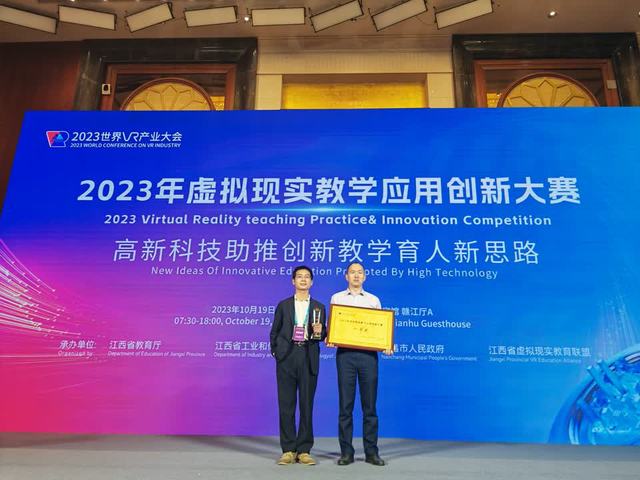 近日,2023世界VR产业大会在南昌绿地国际博览中心举办,东华理工大学作为江西省5G产业联合会理事单位受邀参加会议。大会期间举行了2023虚拟现实教学应用创新大赛决赛,全国共37个团队进入决赛,东华理工大学贺前钱博士团队作品“虚拟融合VR实训平台助力测绘新工科人才培养”获一等奖。